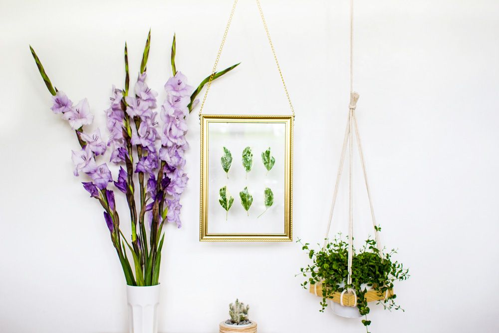 I’m currently obsessed with finding new, interesting ways of decorating and displaying art.One thing my home is sorely lacking is art. I’ve been so consumed with furniture, soft furnishings and far too many hanging planters, that I’ve neglected to extend the decoration to my walls. The pieces I do have are slowly collected and sparsely dotted around my home, and although each of these pieces holds some significance to me, I feel that a few ‘filler’ frames could bring them all together a little more. As well as looking for prints from local artists I want to DIY a few pieces as well and I felt like this DIY hanging gold frame leaf art was the perfect place to start.