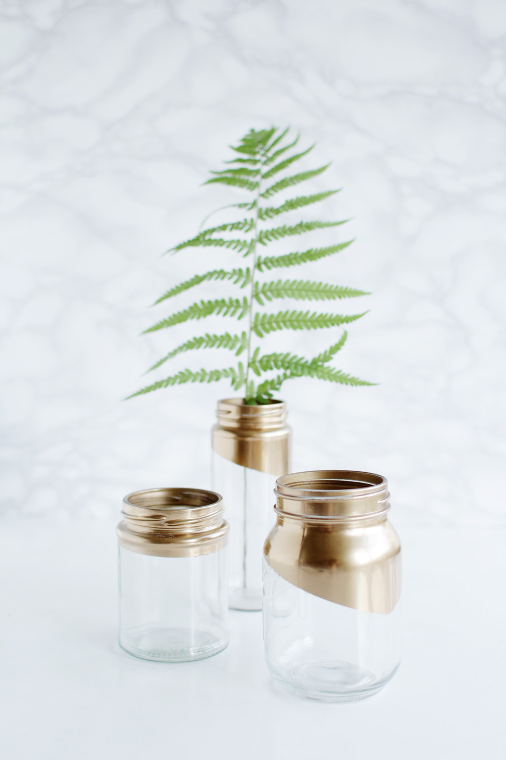 One of the best things about DIY mason jar is you have the opportunity to really personalise all aspects of your decor. You’re not limited to the colours that are in fashion or what’s stocked. You can create something totally unique to you and your tastes. We’ve made these DIY painted mason jar vases with a shiny rose gold, metallic paint, but there’s nothing stopping you choosing silver, or copper. Go for a bright pop of colour, a range of pastels or keep it simple with black or white paint. The choice is all yours. What’s even better? Use old jars to recycle them creating attractive home decor almost for free!