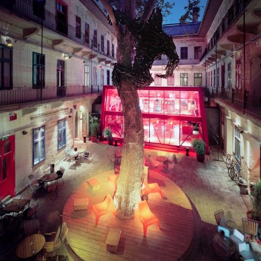 The renaissance of the district began in the early 2000’s, when the area became the favorite destination of the locals and visiting tourists, thanks to the so called “ruin-bars that occupy the inside of the eclectical houses built around 1880-1900. The main objective of the architects of 81font – who are involved in shaping the entertainment district’s visual identity – is to preserve as many of the buildings’ architectural functions and original materials, while giving a new atmosphere to the inner spaces using various exciting design elements.