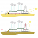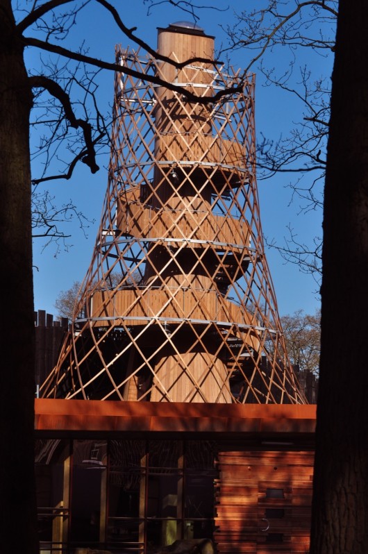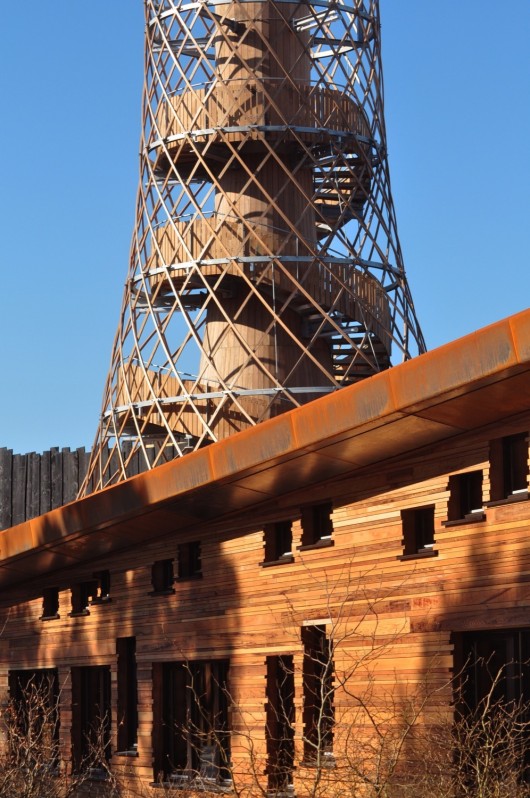 This tower functions as a look out tower, landmark and provides the building of natural ventilation. Natural energy sources are utilized like solar power and bio mass from .