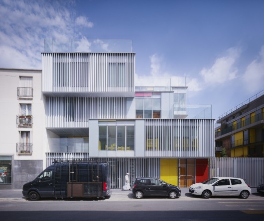 The project develops on each floor generous terraces connection to all rooms awakening children. The “great roof terrace” at the last level is a meeting place and play between the different age groups.