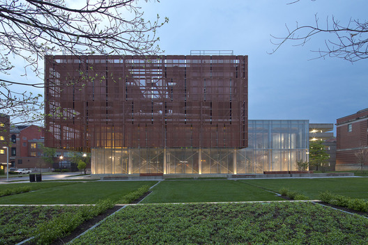 From the architect. On a prominent site between campus and city, this critically important large infrastructure facility fits comfortably among its smaller academic neighbors, preserves an important green space, and frames the gateway for a new campus entry.