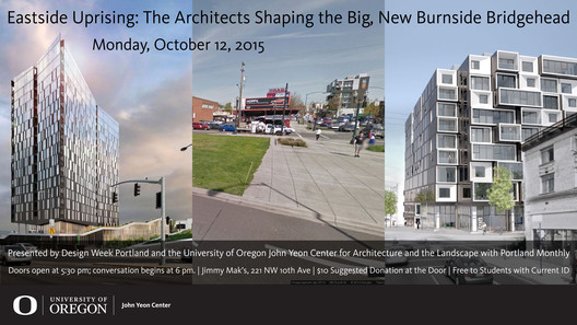- Website: http://calendar.uoregon.edu/event/eastside_uprising_the_architects_shaping_the_big_new_burnside_bridgehead#.Ve8d4M5QWtG