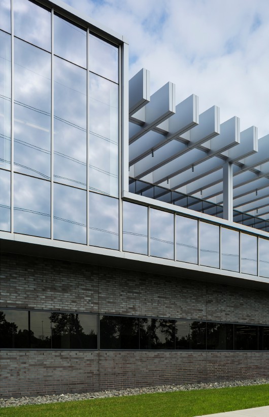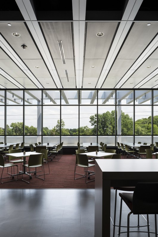 Emerson is a fiscally conservative organization and, while being committed to transforming the Eden Prairie facility, corporate leadership would fund only those design proposals that were deeply rooted and pragmatic goals. Respectful of this value-driven goal, the design team sought poetic expression through rigorous structural logic, finely machined repetitive elements, refined detailing, and abundant natural light and view.