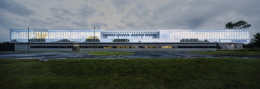 “Transformation” became the singular design vision that informed each aspect of the project. Without adding a single square foot to the existing facility, the reconstruction of the exterior envelope and renovation of all non-manufacturing interior programs, Emerson’s goal was to transform its Eden Prairie, Minnesota facility to meet a younger generation’s expectations for open workplace, enhancing collaboration within the engineering groups, and to better communicate the Emerson brand as part of the visitor/customer experience, and to enhance the thermal performance and energy efficiency of building systems.