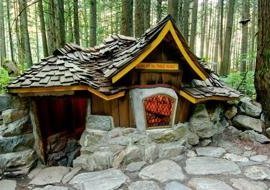 Just listed for $2.7 million, the Enchanted Forest is a fairy tale attraction in one in one of British Columbia’s old growth forests, with 38 acres of trails, four tree houses, and 350 cement fairy sculptures. Though technically a commercial property, the two-story candy cane is a fully functional house.