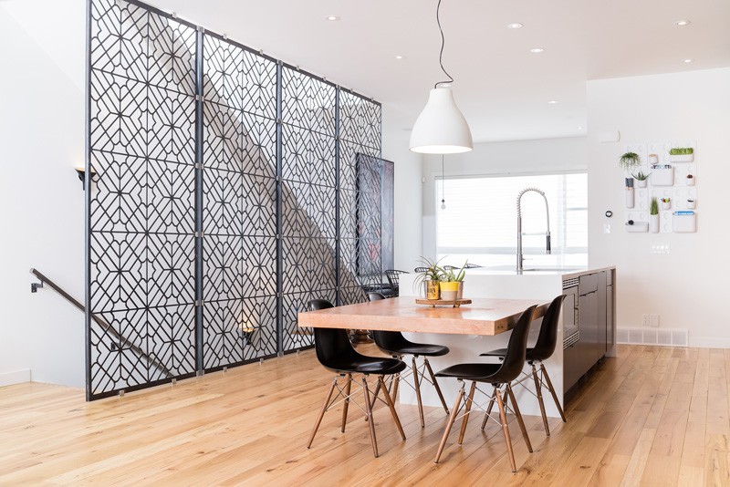 This is a Jali-inspired pattern, the term referring to perforated screens usually found in Indian and Islamic architecture. The design was made by Beyond Homes together with BBLOC, and is in sync with the overall modern style, employing a geometric pattern that allows light to pass through.