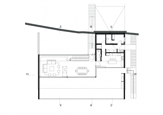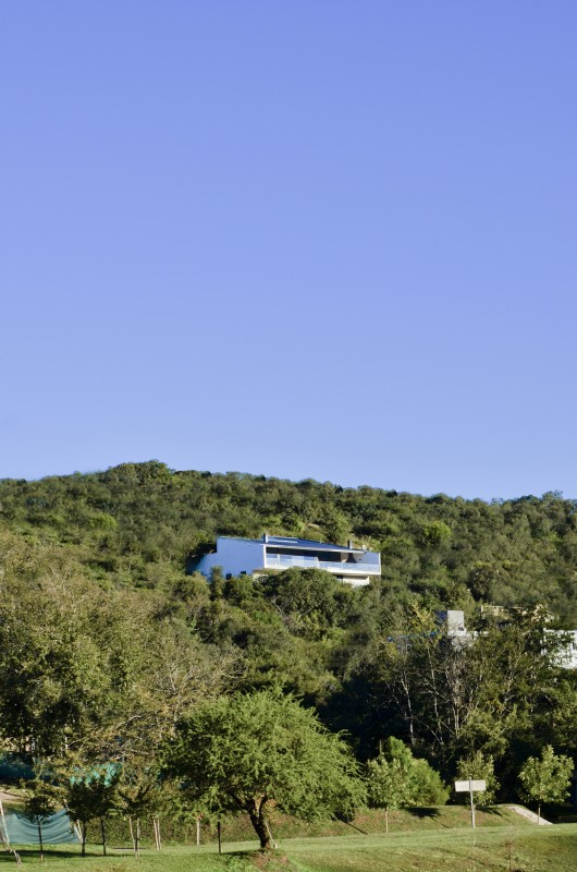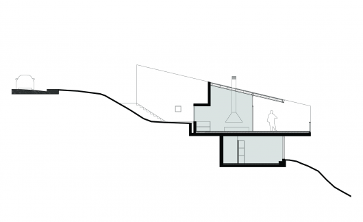 From the architect. The proposal consists of a conventional domestic program located in a site with a steep slope and connected to a landscape of enormous wealth. The construction is divided into three levels that are unified under a sloping roof that accompanies the natural slope.