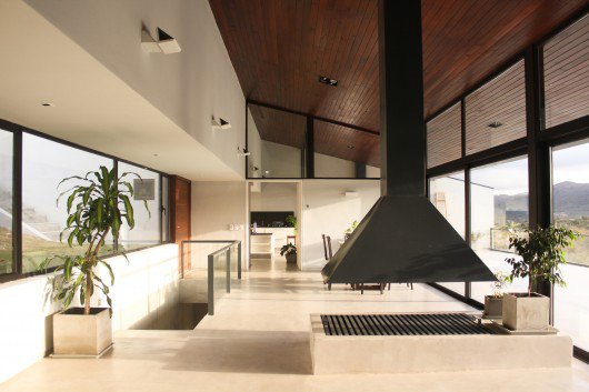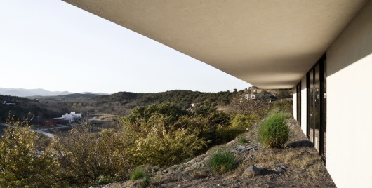The descent through a courtyard leads to the entrance of the house where we can also find the entire public level of the house. This is completed with a cantilevered terrace courtyard projecting into the breathtaking view of the hills of Córdoba, becoming the fundamental strategy of the project.