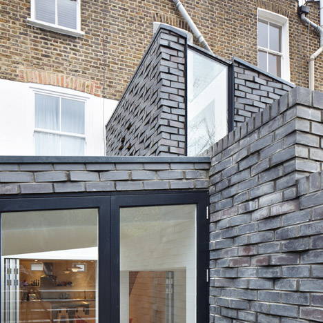 Slate-grey bricks applied in zigzagging rows give the walls of this London house extension a faceted texture that contrasts the smooth, pale yellow brickwork of the original property (+ slideshow). (more…)
