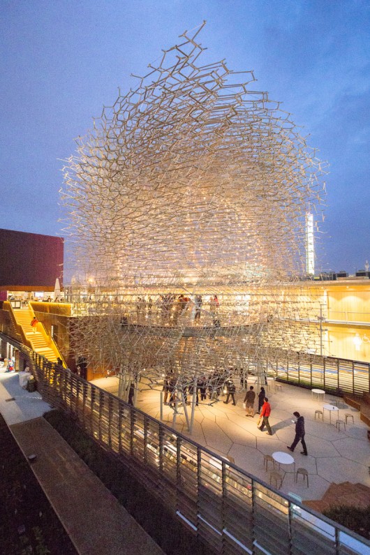 As expected — bearing in mind last year’s expo — the UK pavilion strikes again, perfectly merging art, engineering and architecture. Very conceptual, the beehive is in fact a thoroughly executed installation of 169,300 metal pieces, lights and sounds, complemented by the strong emotions of the visitors. – LG