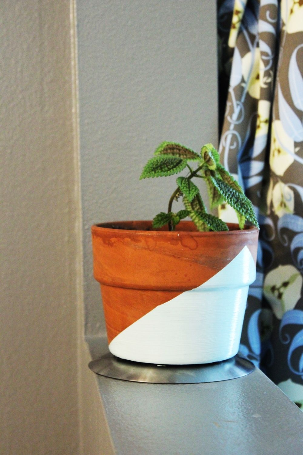 When working with geometric shapes, crisp edges and corners are critical to pull off the clean, modern look. Pay attention to the corners, and make sure your paint covers the entire corner (wrap the paint toward the bottom of the planter, if necessary, to accomplish this).