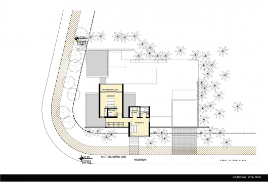 From the architect. The house is located in the midst of a banana plantation in Sea Caves area, near Paphos, Cyprus. The design team saw an opportunity to unleash the living spaces beyond the interior of the house and spill them among the banana trees. A set of exterior walls define the external spaces.