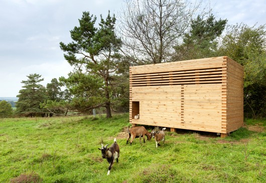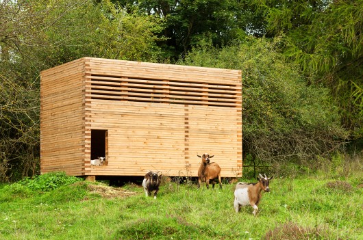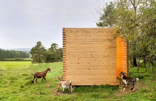 From the architect. The wooden cube, reduced to the necessaries, should be a positive example for agricultural buildings integrating the free landscape around it. With its archaic appearance, the goat barn is situated on a flank in the southern Oberpfalz, a part of Bavaria, Germany.