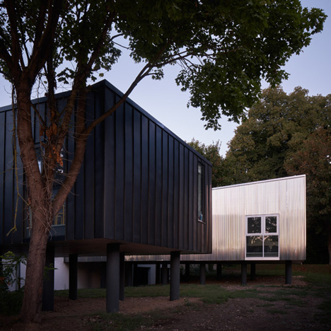 These three corrugated zinc and galvanised steel cabins by Graal Architecture provide a stilted reading room and sports hall for a nursery school in western Paris (+ slideshow). (more…)