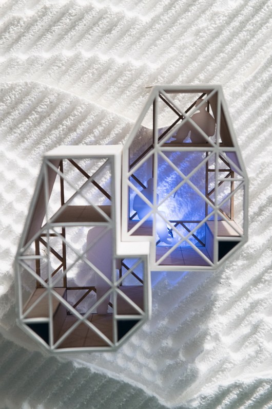 “Harvard Graduate School of Design provided an option studio during the fall of 2014 which dealt with this ongoing issue of housing in the North. Students questioned and researched traditional European alpine settlements in attempt to pose new solutions to contemporary architecture within a North American context. One of the prototypes, an Alpine Shelter that was developed inside the studio will be built on real site bellow the highest mountain Triglav in Slovenia. Currently there is exhibition of the prototypes and the research at Harvard Graduate School of Design Gund Hall. The topic will be introduced and discussed at lecture on February 13th by one of the instructors of the studio, Spela Videcnik from OFIS arhitekti.”