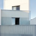 The facade facing the courtyard is recessed in stages as it rises, thus favoring the entry of light in the courtyard, and resulting in small terraces next to each room of the house. The oblique traces of these setbacks resolve the irregularity of the perimeter of the plot. Their translucent nature allows to capture natural light while preserving privacy regarding neighboring lots.