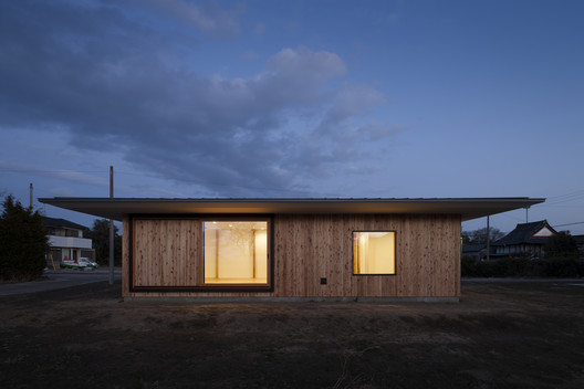 From the architect. This flat house stands in the middle of the northern Kanto Plain; an area that gets hot in the summer and windy and cold in the winter. A young couple and their girl live in the new house that is situated within a vast estate and surrounded by vegetable fields.