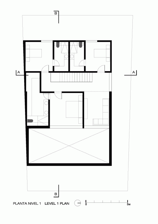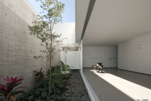 The project is an evolution of the concept of the screen wall, an idea arising from the exercise of homes in gated communities, where the search for privacy and wealth of interior space, cause a mechanism of introspection. The site, between party walls, is located in the foothills of the spring forest in the city of Guadalajara Mexico. The distribution reflects the direction of the terrain: west-east.