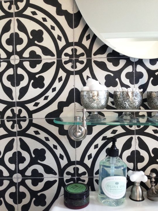 Cement and encaustic tiles are everywhere these days, but there are also not cheap. I’ve noticed a few homes that capture the look of patterned floors with entirely different materials, which let you get that handmade, old world look for a lot less. Here are five inspirational spaces with gorgeous tile, and suggestions for similar, but more affordable, alternatives.