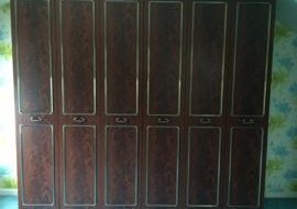 Q: The previous owner is leaving a four-piece, mahogany effect, melamine suite of bedroom furniture. We are grateful as it is in good condition and will be very useful, but it needs a serious overhaul. I’ve thought of grey, orange and white (or a combination of the three), removing the trims and replacing the handles.