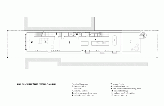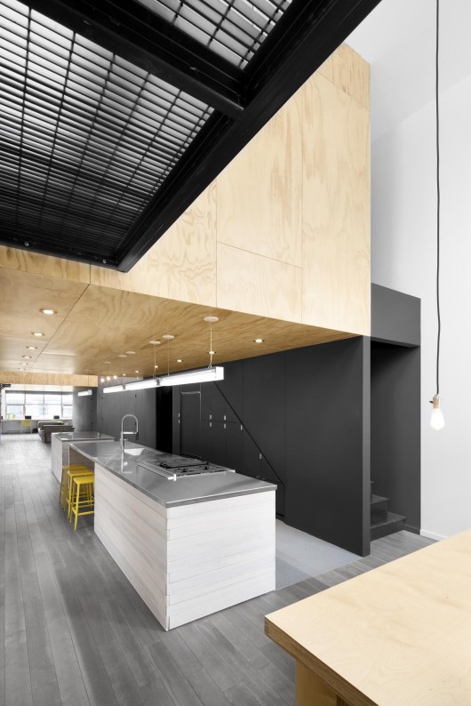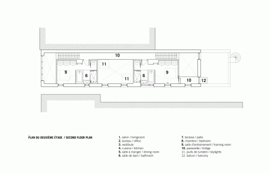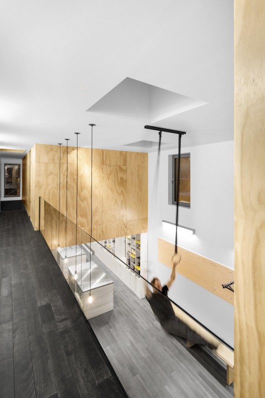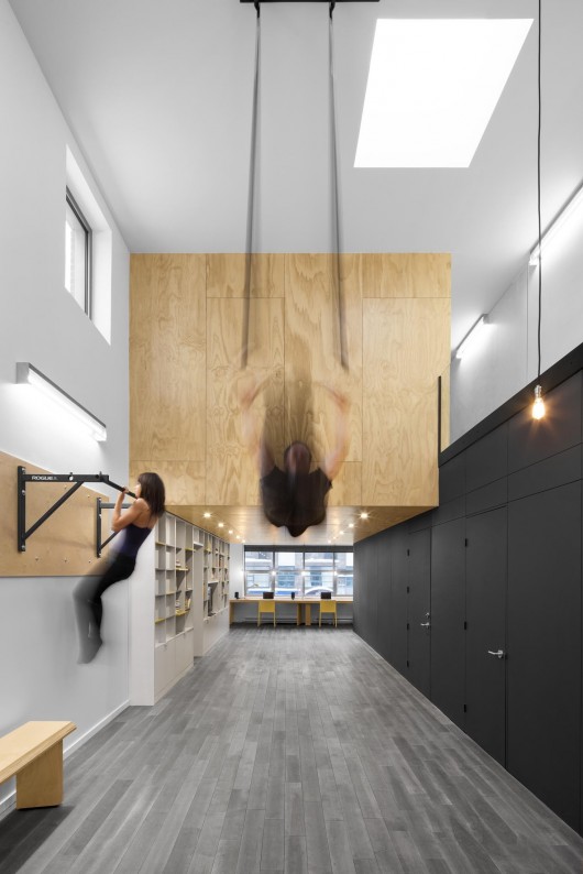 From the architect. The client wants to transform the last two levels of a building to create living spaces for her two athletically inclined children, who are now grown adults. The primary goal is to create a shared living space in which all utilitarian functions are shared but which still allows each person to have privacy.