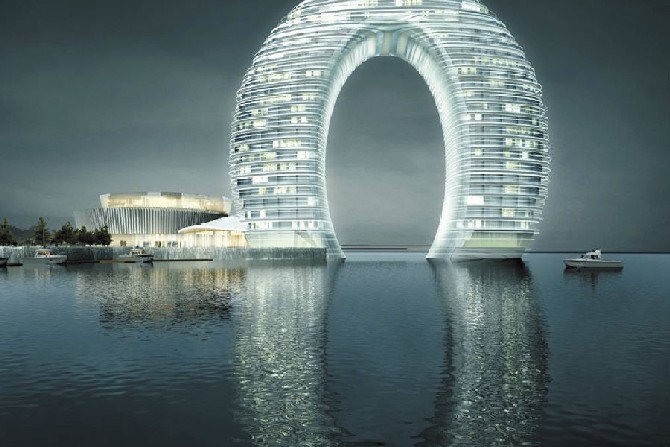 Sheraton Moon Hotel is located next to Nan Tai Lake in Huzhou, a city situated west of Shanghai and north of Hangzhou, overlooking Suzhou and Wuxi across the lake. Since ancient times, Huzhou has been known as “the house of silk” and “the land of plenty.” The hotel’s arcing form connects past and present and land and water. The unique design which integrates the building into the waterscape of Tai Lake, reflecting in the water below and creating a poetic echo of the natural landscape.