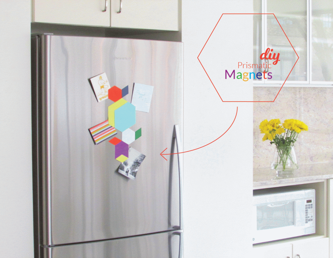 Displaying magnets and photos on the refrigerator helps makes our homes feel a bit more personal and like a catalog photo shoot. But too many incongruous elements on the refrigerator door can have a cluttered, messy, and less than pretty effect. So why not switch out those mismatched magnets for a set of playful, prismatic ones, and turn your refrigerator into an interactive art installation with these DIY prismatic magnets?