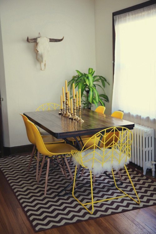 I live in a classic 700 square foot Art Deco apartment in Minneapolis. The building was constructed in the early 1930s and maintains much of the original charm (cast iron radiators, porcelain farm sink, crystal door knobs, and the ornate brass light fixtures.)