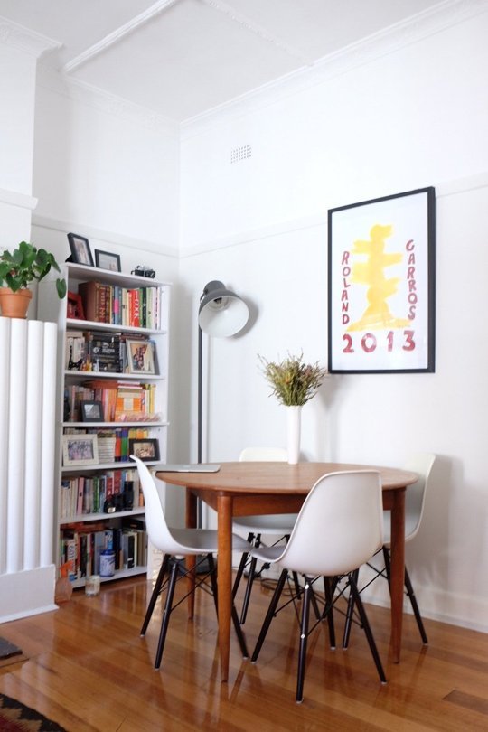 When I inspected this apartment for the first time a few months ago and walked into the living room, I had a very clear vision of what it should look like. The room is spacious, but very square for a combined living/dining area, which made finding the right sized furniture more difficult. Budget was tight, but to my surprise, after a few months of hunting for second hand furniture bargains, I’ve ended up with the exact room I wanted from the beginning.