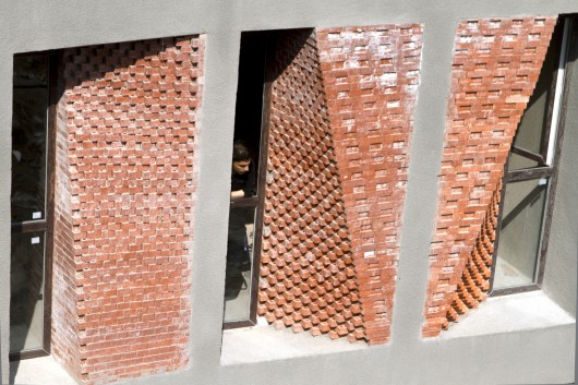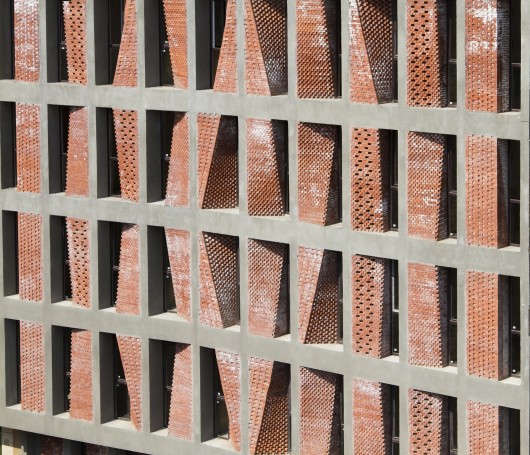 Brick modules’ designs are based on Iranian geometrical patterns; each module was designed in relation with the function of the space behind it. Having variety in brick modules they are coherent and homophonic. That’s how it resulted in a smooth facade to represent both Iranian brick architecture and the essence of residential. In addition this geometry is concrete for local workmen and thus it facilitates the construction process. The geometry is also present in traditional residential architecture of desert areas of Iran.