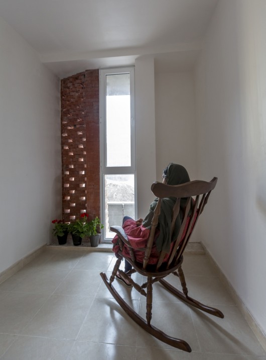 The choice of material was a significant parameter in this project mainly because we had to choose something affordable and easy to freight to the site. As a result, we considered clay blocks which were produced in a factory nearby and this meant a considerable decrease in the freight charge of the materials. The modules were constructed with bricks and we tried to find a suitable material for the module frames. The least expensive material that gave us the ability to create our desired sense of space was concrete. This way, we could reduce the cost of the project to its minimum. We used this reduction of cost to create the high quality interior spaces.