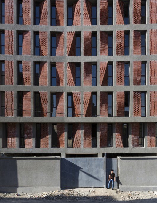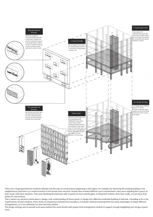 As it may be seen in the project images we used clay blocks in the façade in a way that cover some parts of the terraces according to the reasons mentioned above.