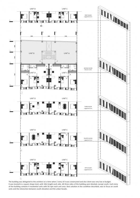 The close collaboration between architect and the client caused the progress of this project in a half forgotten district and at last it reached residents satisfaction. The units were sold-out during the construction phase with the same price of a finished building in the neighborhood while there was so many completed buildings left unsold. This way we achieved the client`s goal to gain profit of his project. That was what we all searching for; residents’ satisfaction, the clients’ benefit; A proper architecture from architect`s point of view and a good resume for constructors. Thus everyone who was somehow involved in the project was given what he/she tried to achieve.