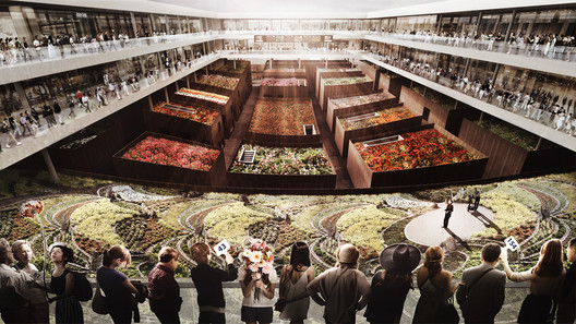 On special days, shopping streets would be converted into viewing terraces, in order to accommodate large-scale flower auctions in the levels below.
