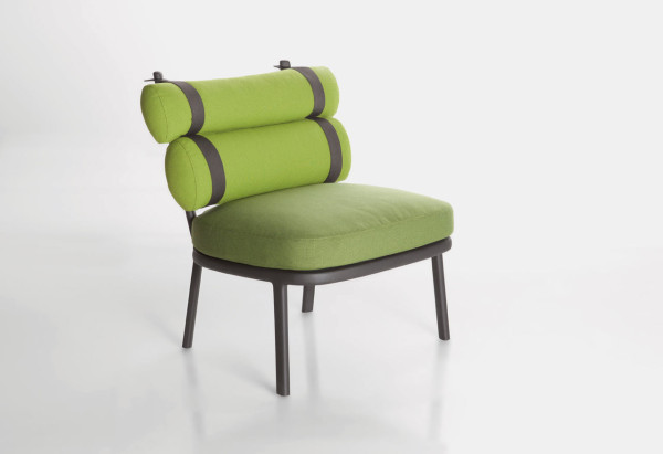 Kettal launched the new Roll chair by Patricia Urquiola which does away with the idea of typical outdoor, upholstered furniture. Instead of the all-in-one cushions, Roll features two individual cushion “rolls” that are fastened into place with colorful straps.