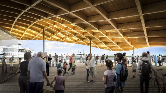 KPMB Architects, West 8 and Greenberg Consultants have been announced as winners of a competition to revitalize Toronto’s Jack Layton Ferry Terminal and Harbor Square Park. The winning proposal, “Harbour Landing” envisions a terminal embedded within the surrounding park and topped with a lush public green space that expands the waterfront park.