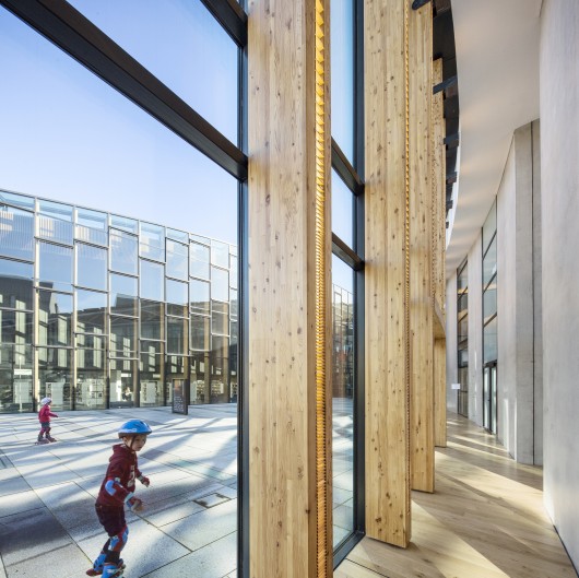 The kinetic energy of the paths, wherever they are in the complex, brings out a diversity of perspectives that enrich the viewpoints within the building and beyond. The contrast between the linear nature of the surrounding residential buildings can only reinforce this impression of entering a different world, a world of its own, although designed like one of the gates of the town.