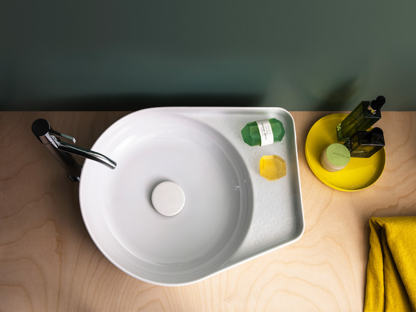 konstantin grcic’s collaboration with LAUFEN has come to fruition in the form of ‘VAL’, a collection of washbasins, storage trays and a bathtub which exhibit architectural lines and extremely thin walls, combined with textural surfaces.