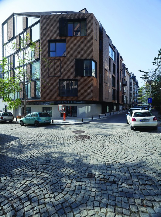 From the architect. “Liubata” is a residential building situated in Lozenets neighborhood, a location which has been chaotically overbuilt during the 90-ies. The abundance of shapes and colors in such a small area demanded a pause, an approach different from the solid volume.