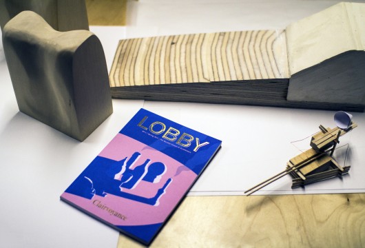 Consistent with its name, and the structure of the first issue, LOBBY is a theoretical platform for discussion which is organized in sections named for the physical spaces of the studio building including Reception, The Exhibition Space, The Seminar Room, The Lift, The Crit Room, The Staircase, The Library, and The Toilets.