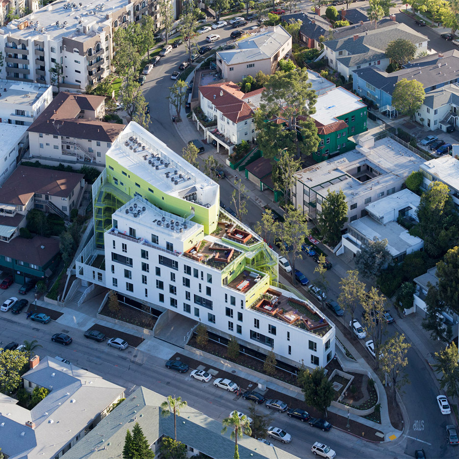 Lorcan O’Herlihy Architects has completed a wedge-shaped residential building for students and faculty on a sloped urban site in Los Angeles (+ slideshow). (more…)