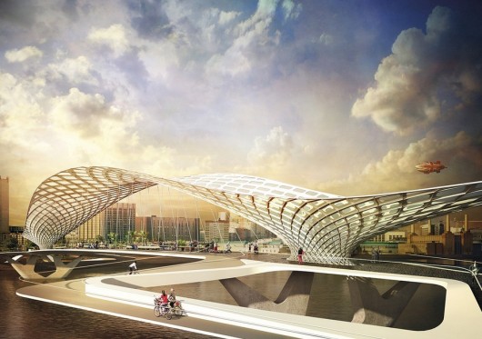 These entries produce a creeping sense of déjà vu. Here we have 74 frequently outlandish ideas for a brand new pedestrian bridge, connecting two of the wealthiest areas of London, with the express aim of becoming a new landmark for London; as Wainwright points out, Wandsworth Council seems at pains to avoid using the word “iconic,” even though that’s unquestionably what they’re after. This all has the same bitter taste as that “tiara on the head of our fabulous city,” the Garden Bridge – a postcard of a project designed by Heatherwick Studio that was whisked through three levels of planning approval faster than you can say “Boris Johnson’s Mayoral Legacy,” despite being criticized by seemingly everybody that was not involved in commissioning, designing or approving it.