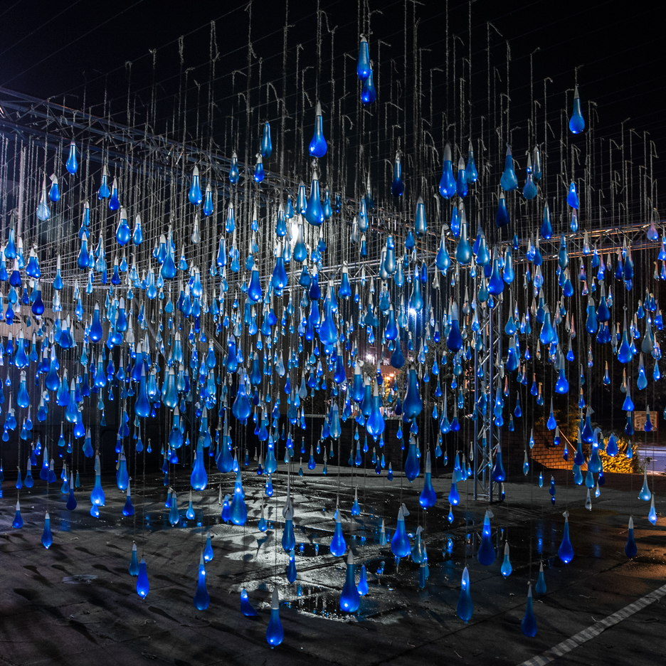 Water and light-filled condoms that resemble oversized droplets hung over the heads of visitors to this London installation by Spanish studio Luz Interruptus. (more…)