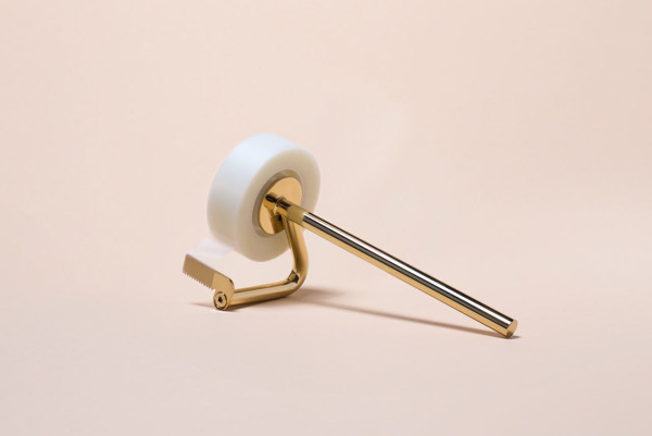 Such is the case with the eccentric handled design of this brass tape dispenser by M-S-D-S Studio. The form is reference to packing tape guns. The handle permits it to sit in a pencil holder or on the desktop itself. It is both a functional office tool and a sculptural object for display that draws attention to everyday office technologies.