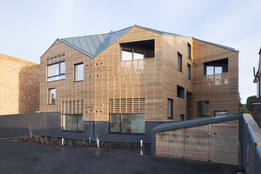 From the architect. Mazarin House is a block of 6 two-bedroom flats in Woodford, East London. The design optimises the use of space on a constrained site using digitally fabricated timber structure and sets high standards of sustainable design.