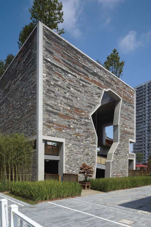 Shu and Wenyu’s use of tile has gained them international recognition, and their Ningbo History Museum is one of the best examples of a structure employing clay tiles in radically different ways. Here the wa pian qiang or clay-tile wall is a key element in the design which successfully anchors the building to its context. Initially used as a vernacular building technique, the actual tiles used in the wall were taken directly from the ruins of the villages that once occupied the site. This not only reflects a desire to reinstate traditional materials in their architecture, but also has the additional benefit of making the structure inherently sustainable for its use of recycled materials.