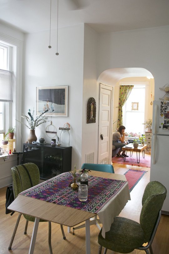 Mia is an artist who works in lots of different mediums, which is immediately apparent when you step into her apartment. She’s a photographer, film maker, and screen printer, and she runs a jewelry company, Pound Jewelry, with her mom and sister. Her brightly colored home is filled with plants, stones, vintage pieces, and art made by her talented friends.