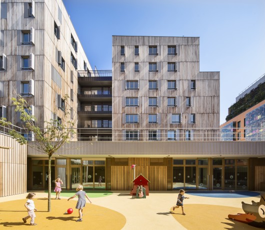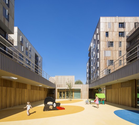 Thanks to four distinct volumes which, by their size, their height, their density but also the shifts between them interact with the suburb’s identity. The hundred-odd apartments are only visible twenty at a time. Integration is a question of scale here.