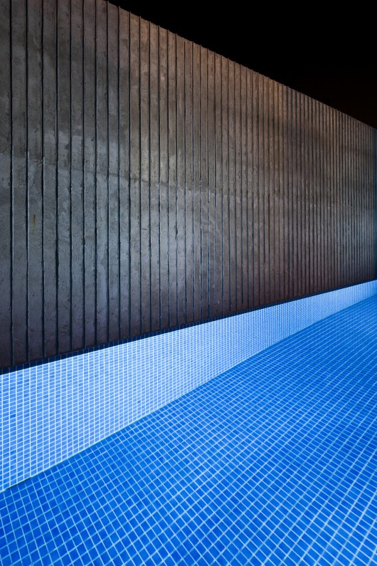 The raised ground floor with the kitchen, the dining and the platform area, is one single space, fully open on three sides from the front yard, the garden to the pool in the back. High fence walls provide privacy, prevent from direct sun light and intrusion.